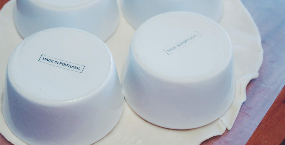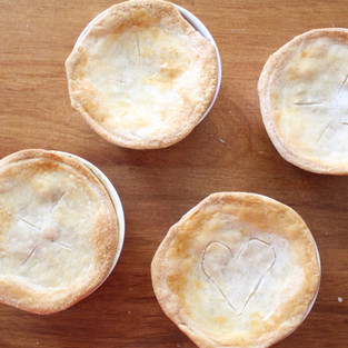 Ramekins (1.5 cup size): Flip ramekin over and cut out 4 circles from pie dough. Spray each ramekin with cooking spray and divide the filling evenly. Top each ramekin with dough circle. If you don't have a pastry cutting wheel, a pizza cutter does an excellent job of cutting out these dough circles easily and an ice cream scoop is great for making sure you divide it evenly.